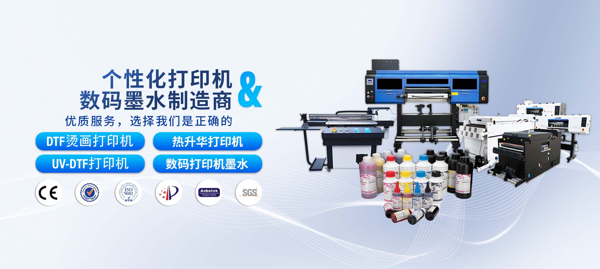 我公司擁有多間技術檢測和產品研發室,以及環境檢測室,我們的儀器設備多達近150臺。通過液相色譜儀、離子色譜儀等儀器檢驗原材料組分與純度; 通過激光粒度儀分析墨水中顆粒形態及分布; 通過納米研磨技術使墨水顆粒達到正態納米分布。我們的產品產品綠色環保,目前已擁有國內多項研發和實用型專利,目前已獲得國內ISO質量體系認證和十環認證,以及國際性REACH、SGS、MSDS等實力性資質認證。